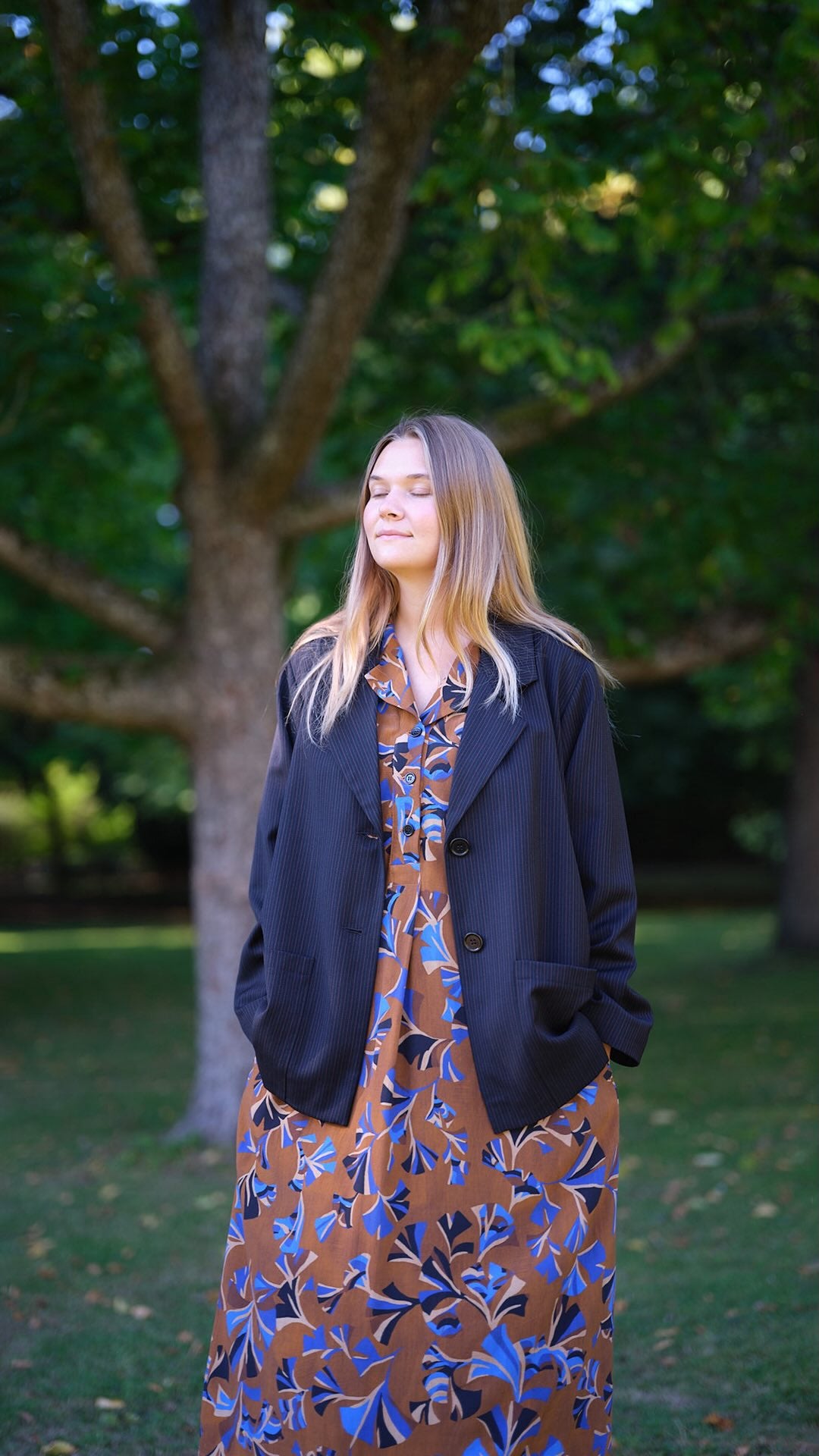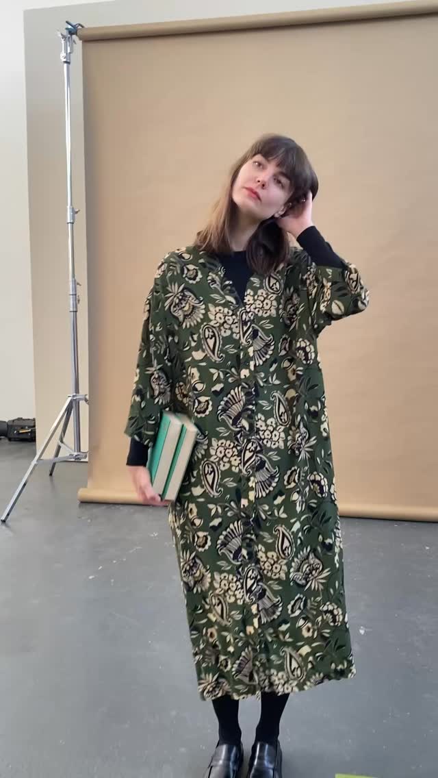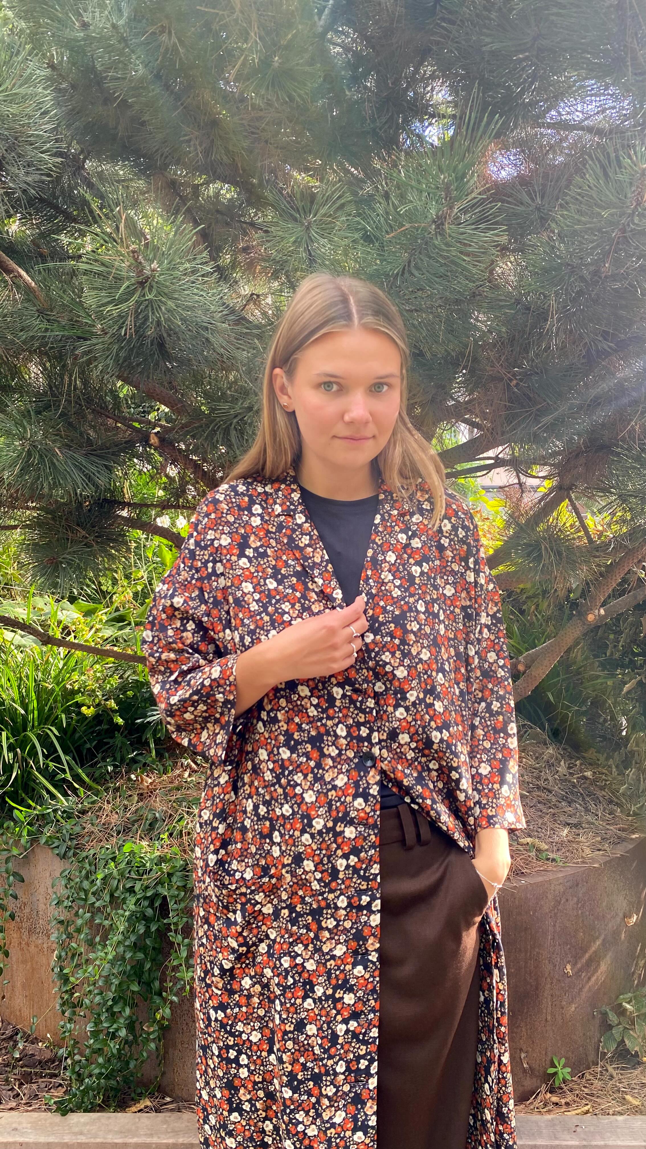 Our beautiful Margot kimono has a straight fit with a wrap closure. It is slightly longer at the back than at the front. Margot Myller is sewn from a beautiful wool fabric. The fabric is a remnant....